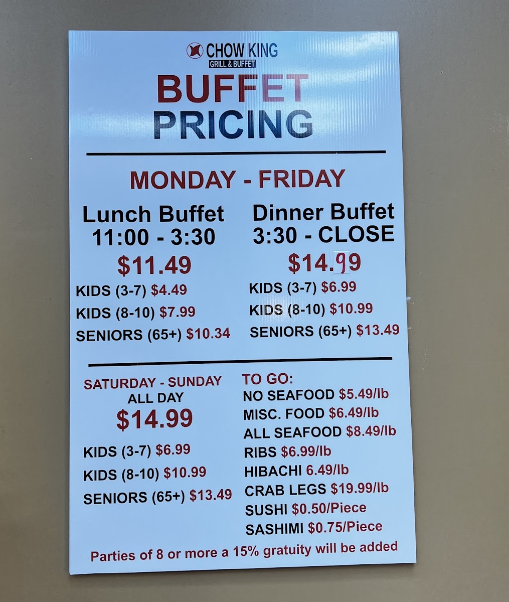 Welcome to Chow King Grill & Buffet, a haven for buffet lovers located at 1000 Beltline Rd SW, Decatur, AL. Offering an impressive array of dishes, this restaurant promises an unforgettable dining experience without breaking the bank. The lunch buffet is priced at just $11.49, while dinner invites you to indulge for $14.99. Highlights include a fresh salad bar, satisfying hibachi options, and an enticing selection of sushi for only $0.50 per piece.